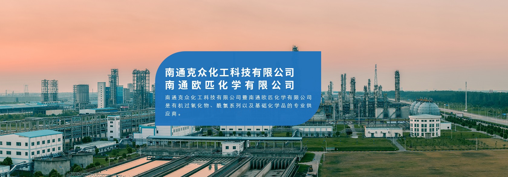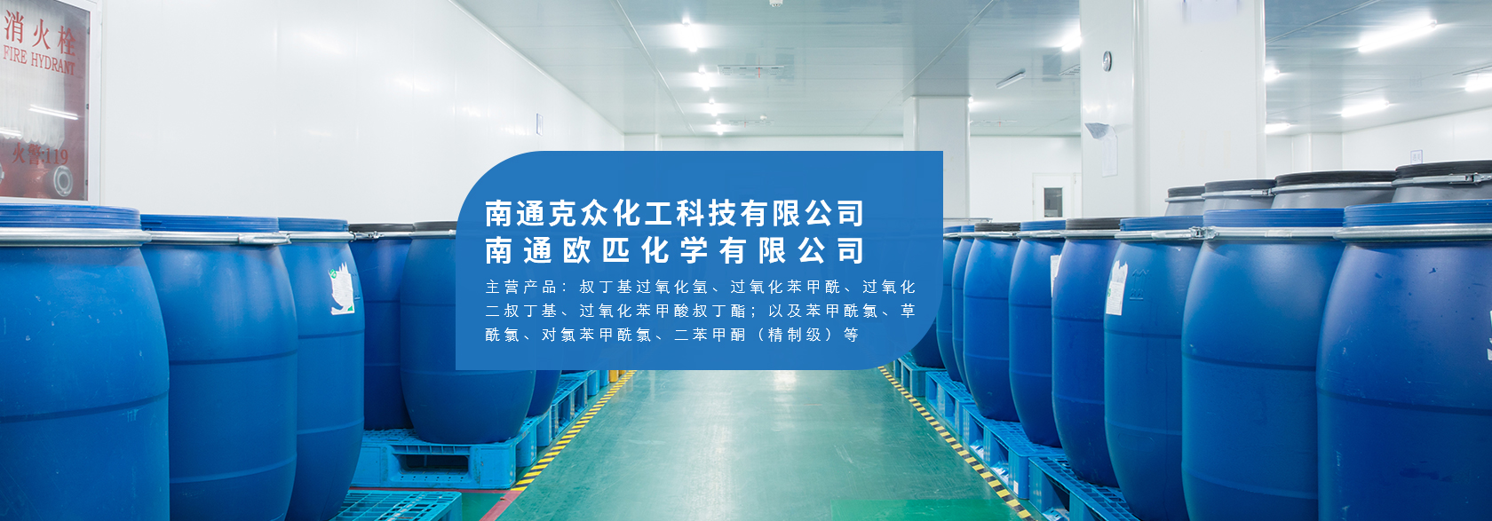 南通克众化工科技有限公司暨南通欧匹化学有限公司是有机过氧化物、酰氯系列及基础化学品的专业供应商。 有机过氧化物:过氧化苯甲酸叔丁酯、过氧化苯甲酰、过氧化二叔丁基、叔丁基过氧化氢、2,5-二甲基-2,5-双(叔丁基过氧基)己烷、过氧化双(2,4-二氯苯甲酰)等,共计5000吨/年。